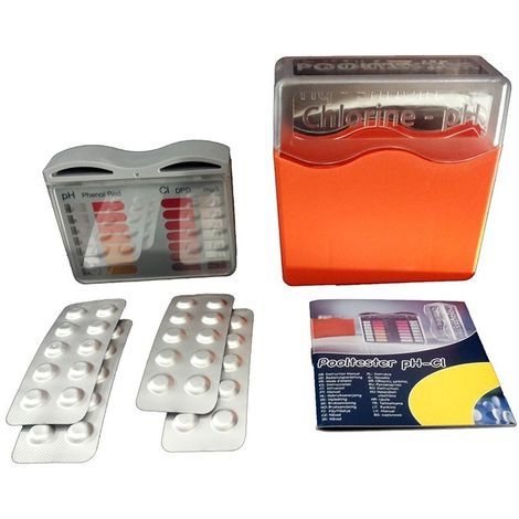 Kit para el análisis de cloro y pH.Incluye 30 pastillas de DPD 1 para analizar el cloro y 30 pastillas de RED PHENOL para el análisis del pH. Práctico estuche fácilmente transportable. No ocupa espacio. Incluye instrucciones.